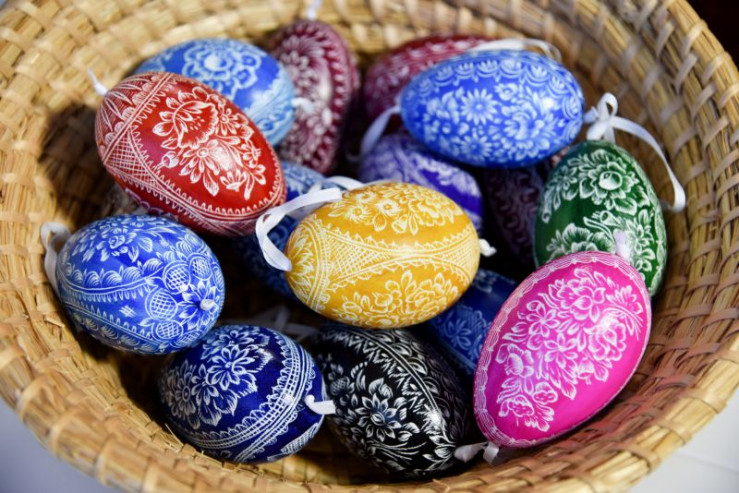 Ostereier-Variationen entstehen etwa durch das Auftragen von Schutz- und Glückssymbolen aus Wachs, dazwischen werden die Eier in immer neue Farben getaucht. Andere Eier werden zuerst gefärbt, bevor mit einem Stahlmesser Muster eingekratzt werden.