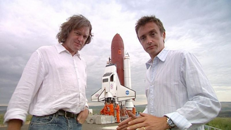 Richard Hammond (l.) und James May beobachten der Start des Reliant Robin Space Shuttles. +++ Die Verwendung des sendungsbezogenen Materials ist nur mit dem Hinweis und Verlinkung auf RTL+ gestattet. +++