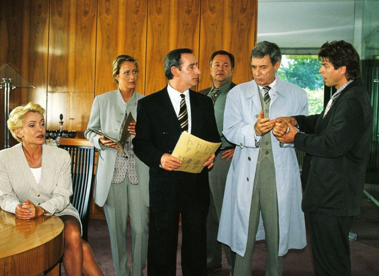 4. Staffel: v.li.: Max Gertsch als Kriminalkommissar Ralf Bongartz, Britta Schmeling als Staatsanwältin Charlotte Glaser, Henry van Lyck als Oberstaatsanwalt Gerhart Lotze und Wolfgang Bathke als Kriminalhauptkommissar Stefan Kehler