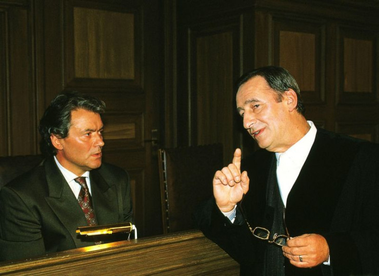 Oberstaatsanwalt Lotze (Henry van Lyck, r.) und Paginsky (Hans-Jürgen Bäumler) im Gerichtssaal. Paginskys Hund hat einen Jogger angefallen und tödlich verletzt.