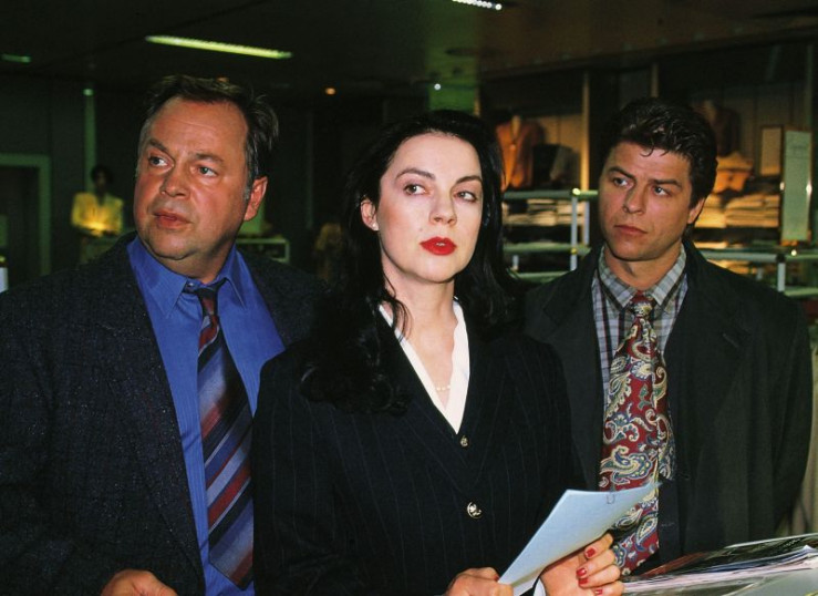 4. Staffel: v.li.: Henry van Lyckals Oberstaatsanwalt Lotze, Britta Schmeling als Staatsanwältin Glaser, Wolfgang Bathke als Kriminalhauptkommissar Kehler und Max Gertsch als Kriminalkommissar Bongartz.
