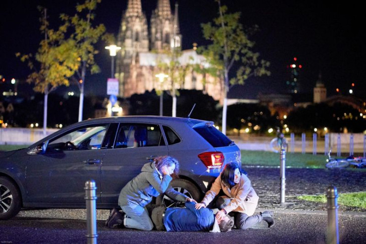 Simon Wagner (Thomas Scharff) lässt sein Fahrrad liegen und eilt zur Hilfe.