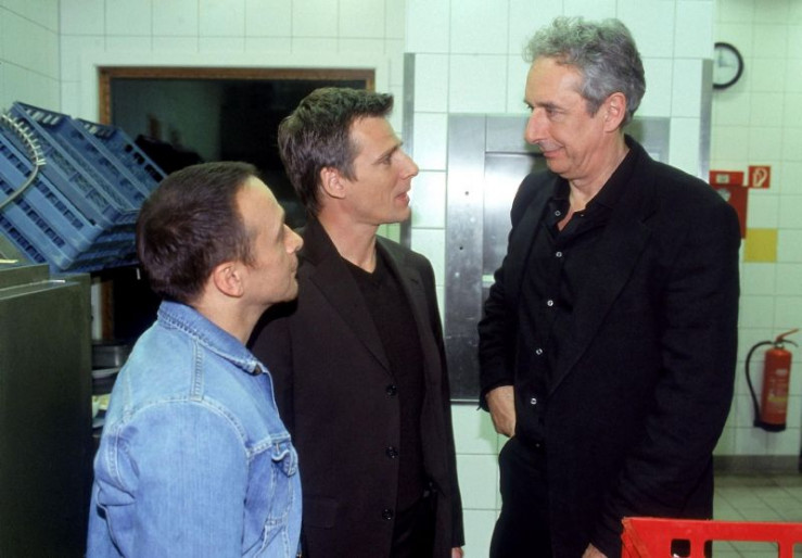 Tom (Rene Steinke, re.) und Semir (Erdogan Atalay, 2.v.li.) wollen von Toms Vater Frankie (Jürg Löw, li.) wissen, was in seinem Lokal vor sich geht. Warum liegt ein Mann (Daniel Christensen) in seinem Keller, gefesselt und geknebelt? +++ Die Verwendung des sendungsbezogenen Materials ist nur mit dem Hinweis und Verlinkung auf RTL+ gestattet. +++