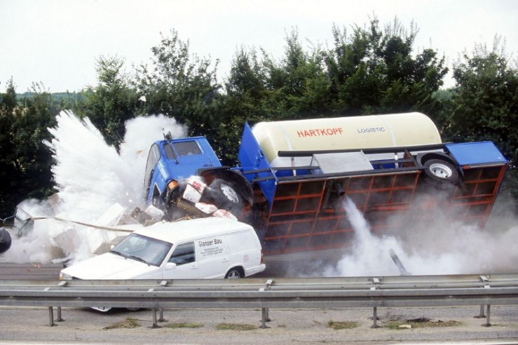 Die fliehenden Gangster verursachen einen Massencrash, bei dem ein Silotransporter umkippt und das Silo mehrere PKW's niederwalzt...