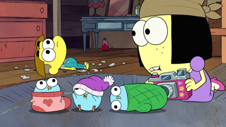 a) Bill nimmt die Familie mit auf einen Ausflug, der jedoch in einem Stau endet. b) Tilly findet ein Vogelnest, kümmert sich um die Eier und hofft, dass die Küken sie als Mutter annehmen.