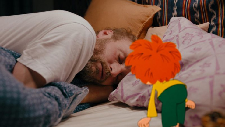 Eder muss abends nochmal kurz weg. Pumuckl soll aber schonmal ins Bett gehen, damit er morgen ausgeschlafen sei. Gesagt. Getan. Pumuckl stellt sogar den Wecker, nur leider auf eine falsche Uhrzeit. Als es bei Eder zu spät nach Hause kommt, fällt er todmüde ins Bett. Als dann mitten in der Nacht der Wecker klingelt, will Pumuckl unbedingt aufbrechen. Sie müssen los! Eder denkt, es sei früh am Morgen, und schleppt sich ins Bad. Pumuckl treibt ihn an. Zähneputzen, Eder! Währenddessen packt Pumuckl den Rucksack mit allerlei unnötig-wichtigen Dingen. Doch bald ist Flori im Bad eingeschlafen. Und auch Pumuckl holt die Müdigkeit ein.