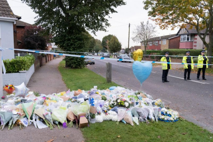 Blumen zum Gedenken an Sir David Amess, zwei Tage nach seiner Ermordung in Leigh-on-Sea, Southend, Essex, am 17. Oktober 2021. Der konservative Abgeordnete war während seiner wöchentlichen Bürgersprechstunde von Ali Harbi Ali mit einem Messer angegriffen worden. +++ Die Verwendung des sendungsbezogenen Materials ist nur mit dem Hinweis und Verlinkung auf RTL+ gestattet. +++