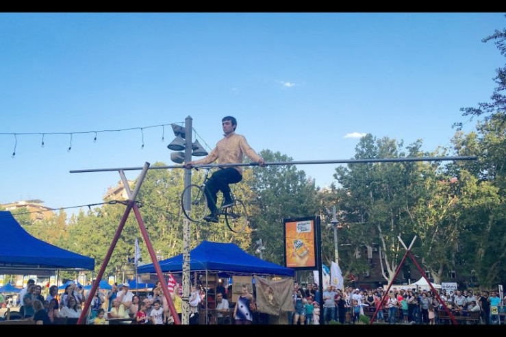 Hovsep Atinyan bei einem Seiltanzauftritt während eines Bierfestivals in Eriwan. Seine komplizierteste Nummer: das Fahrrad.