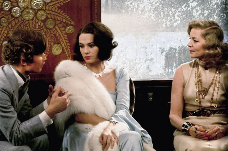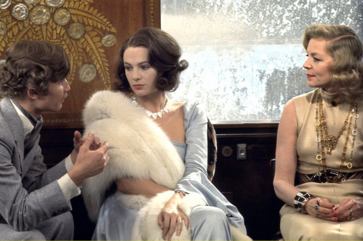 An Bord des ?Orient-Express?: Graf (Michael York), Gräfin Andrenyi (Jacqueline Bisset) und Mrs. Hubbard (Lauren Bacall, v.l.)
