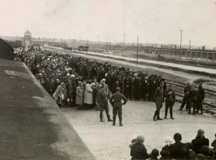 Der letzte Weg: Menschen, die zu Fuß zu den Gaskammern von Auschwitz gehen müssen.
