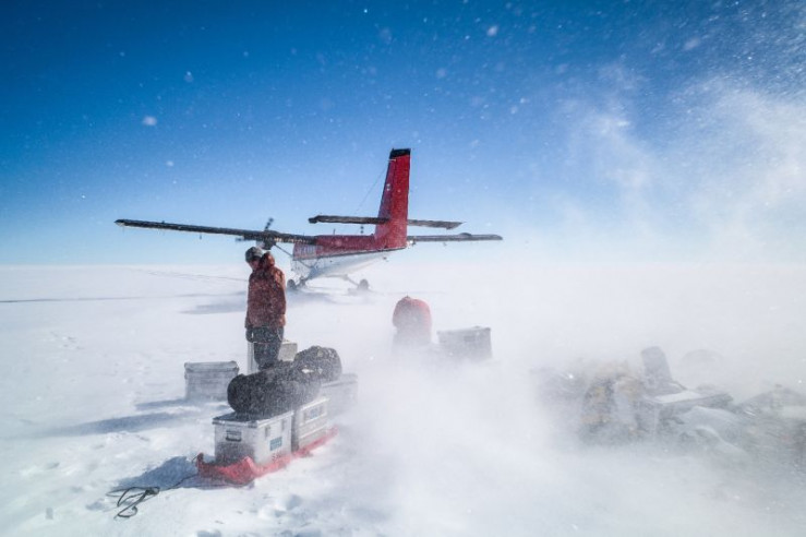 Zwei Wochen lang lebte die Forschergruppe in der Polarwüste von Nordgrönland. Im Hintergrund das Lager der Expedition 2017. Im Umkreis von 150 km suchten die Forscher mit einem Bodenradar nach den Resten von Camp Century und den problematischen Müll-Lagern.