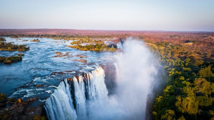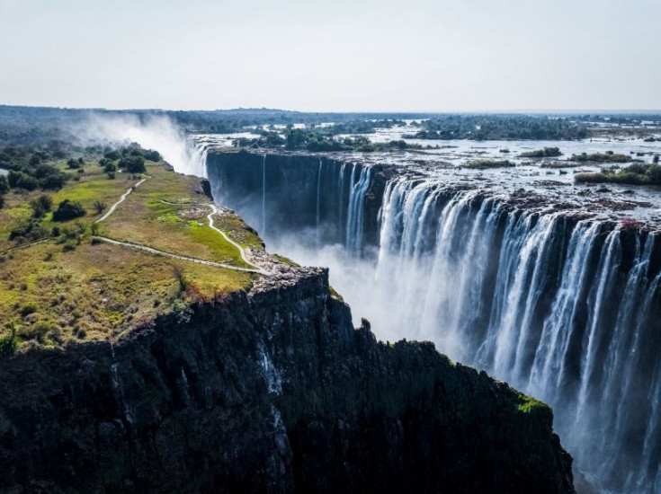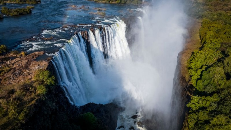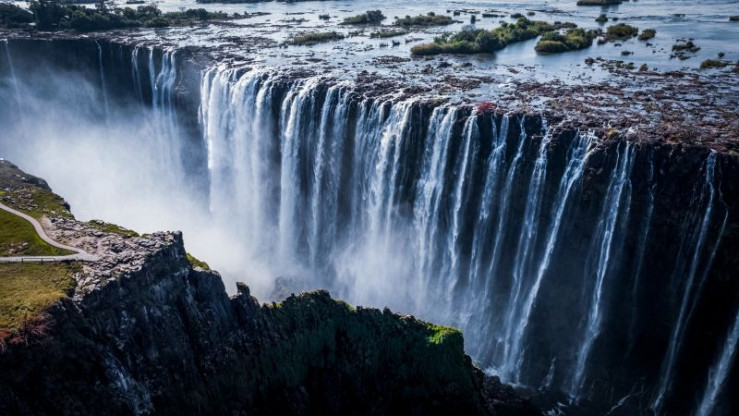 Die Abbruchkante der Viktoriafälle ist durch Inseln, Vertiefungen und Vorsprünge in mehrere Abschnitte geteilt.