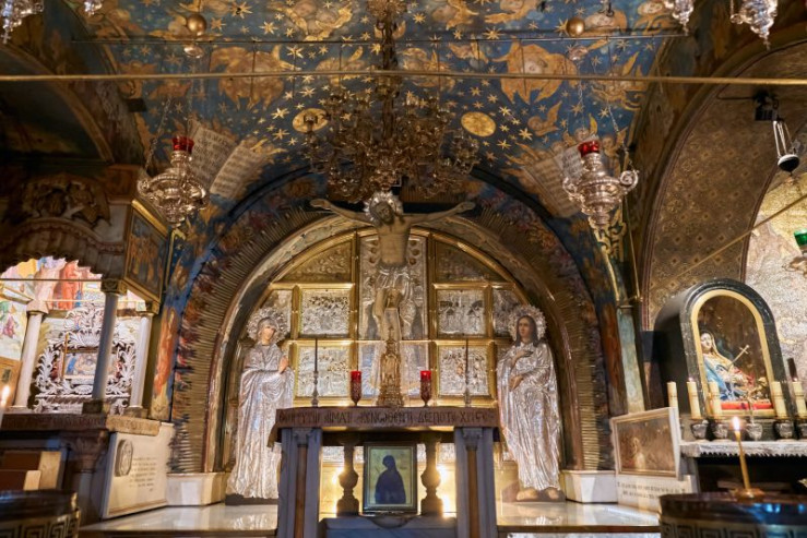 Fast alle christlichen Religionen sind in der Jerusalemer Grabeskirche vertreten - hier der griechisch-orthodoxe Altar.