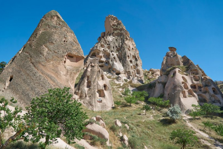 Warme Quellen mit extrem kalkhaltigem Wasser ließen die Kalkterrassen von Pamukkale entstehen.