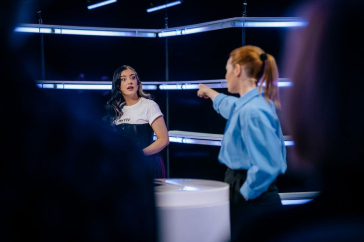 Parshad Esmaeili (l.) tritt in ihrer Gameshow gegen Karoline Herfurth (r.) an. Sie müssen entsprechende Begriffe fünf Protagonisten und Protagonistinnen zuordnen - von Berufen bis zu Persönlichkeitsmerkmalen.