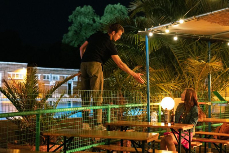 Bei einem Spaziergang erfährt Emma (Jessica Barden) faszinierende neue Details über Ben (Harry Lawtey).
