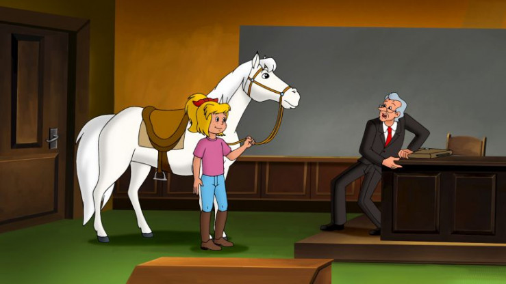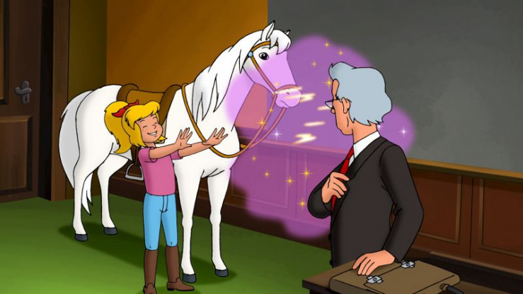Um dem Lehrer seine Angst zu nehmen, hext Bibi Sabrina ins Klassenzimmer. Außerdem hext sie ihm eine Pferdemähne und das Wiehern an. Dummerweise kann sie den letzten Hexspruch nicht rückgängig machen und muss dem wiehernden Lehrer helfen, sich zu verstecken.