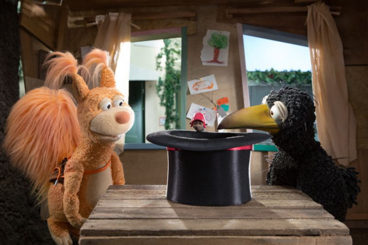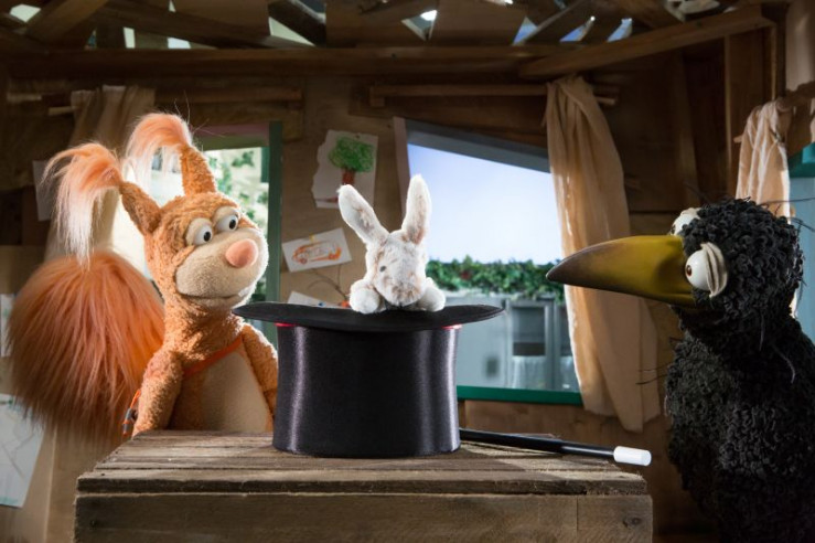 Heimlich haben sich Ella (Anna Menzel) und Rudi (Lennart Morgenstern) Vampis Zauberhut ausgeliehen. Der Kaninchentrick hat sogar funktioniert!