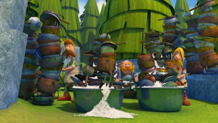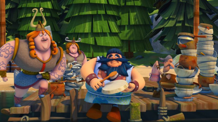 Halvars Träume von Inseln mit goldenen Pflastersteinen haben sich ausgeträumt, als das Boot auf ein Felsenriff rauscht und Amazonen auftauchen, die die Crew zur Schnecke machen.