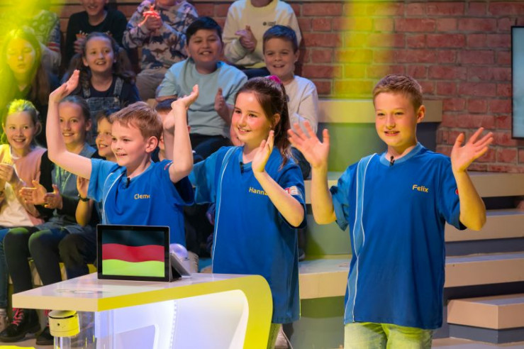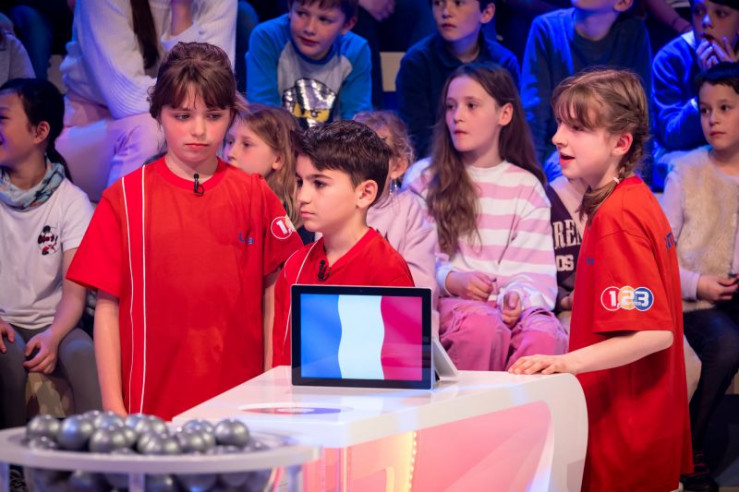 Das rote Rateteam aus Fontainebleau/Frankreich grübelt über eine von Eltons kniffligen Fragen.