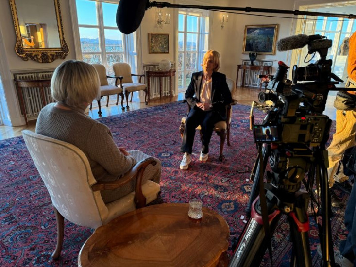 Katrin Eigendorf (r.) im Interview mit der isländischen Präsidentin Halla Tómasdóttir (l.) in Bessastaðir in Island.