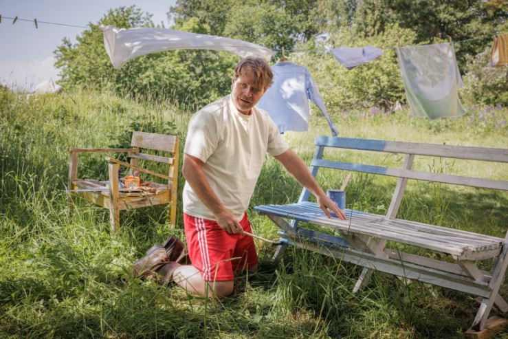 Melker Melkersson (Henrik Norlén) erweist sich in handwerklichen Dingen als sehr ungeschickt.