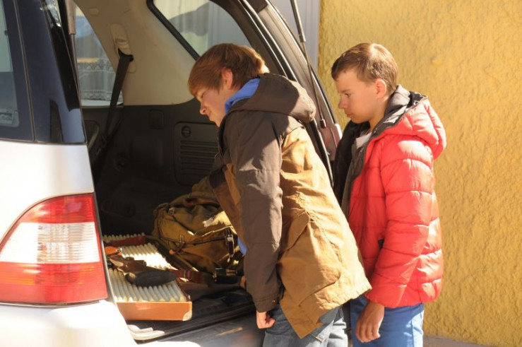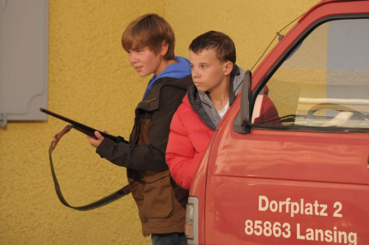 Christian und Seppi stibitzen unbemerkt Stadlbauers Gewehr samt Munition aus dem Kofferraum.