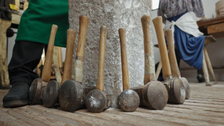 Goldschlägermeister Werner Auer kennt die Tradition des Blattgoldschlagens. Er ist einer der Letzten, die das alte Handwerk noch beherrschen und vorführen können. Mittlerweile wird das Gold nicht mehr von Hand geschlagen.