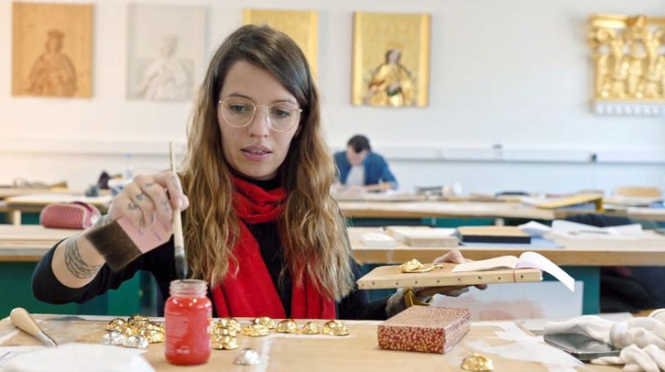 Das Filmteam begleitet Lara Haferung, die den Familienbetrieb einmal übernehmen möchte. Es hat sich zwar vieles geändert in der Goldschlägerei, aber einige Produktionsschritte wie das Blattgoldbeschneiden werden noch wie jeher von Hand ausgeführt. Wie es früher in den Schwabacher Betrieben zuging, erzählen die ehemaligen Zurichterinnen Gerda Fleischmann und Karin Gruber.