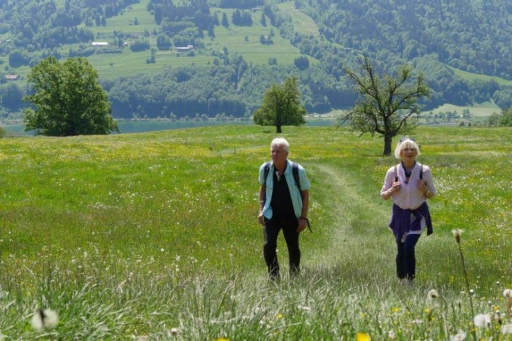 Autorin Rita Falk ist zusammen mit Werner Schmidbauer auf dem Juget Köpfle (1026 m) bei Immenstadt im Allgäu unterwegs. Weiteres Bildmaterial finden Sie unter www.br-foto.de.