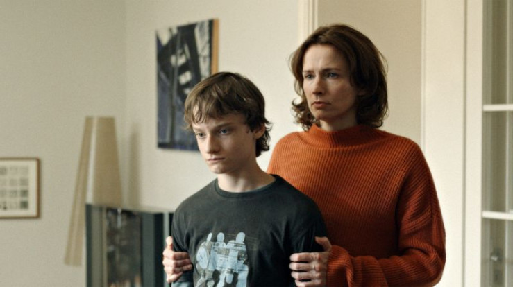 Johann (Claude Heinrich) und seine Mutter Ann Kathrin Scheerer (Adina Vetter) starren auf das Faxgerät, auf dem langsam das Schreiben mit den konkreten Forderungen der Entführer ankommt.