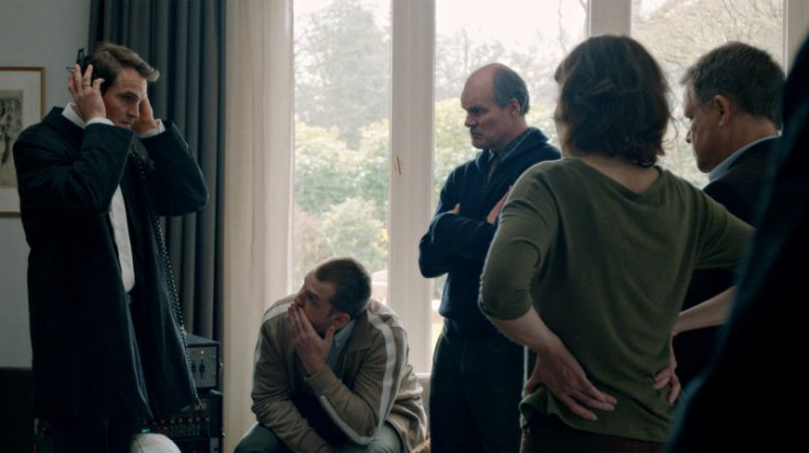 Die quälende Ungewissheit hat endlich ein Ende: Entführungsopfer Jan Philipp Reemtsma (Philipp Hauß, M.) kommt nach erfolgreicher Geldübergabe frei (mit Adina Vetter und Claude Heinrich).