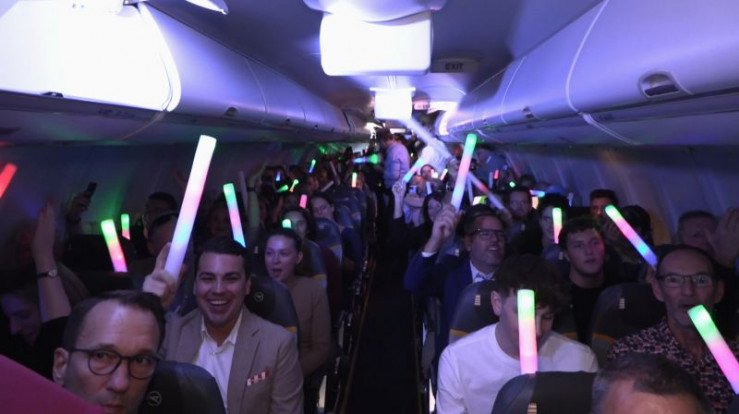 Abschied der Boeing 757 - Party in der Flugzeug-Kabine.