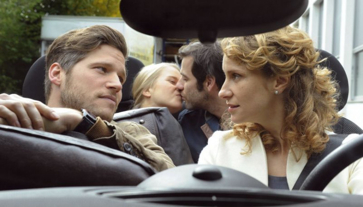 Lissy (Henrike von Kuick, 2. v. li.) und Robert (Andreas Thiele) freuen sich auf ihre Hochzeit. Doch Lissys Schwester Bernadette (Chiara Schoras) ist nicht begeistert darüber, dass Roberts bester Freund Walter (Sebastian Ströbel) dabei ist.