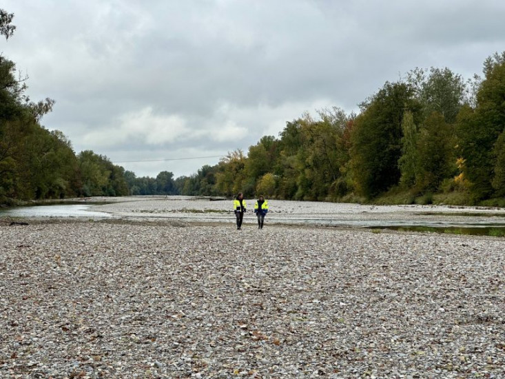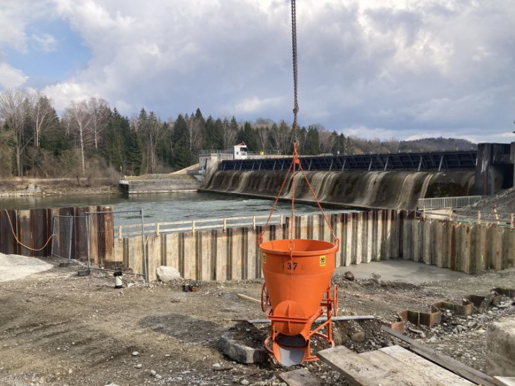 Kieseinbringung bzw. Sanierungsarbeiten am Lech.