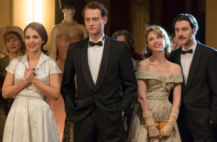 (v.l.n.r.) Ana, Carlos, Clara und Mateo (von li nach re: Paula Echevarría, Peter Vives, Marta Hazas, Javier Rey) verfolgen aufmerksam die Präsentation der neuen Airsa-Uniformen.