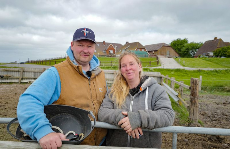 Generationswechsel mitten in der Nordsee: auf Hallig Hooge. Eilien und Torben übernehmen im Mai 2025 den Betrieb von Eiliens Eltern Katrin und Heiner im Nordfriesischen Wattenmeer. Heiner ist im Dezember 2024 überraschend gestorben, der Generationswechsel muss schnell gehen. Eilien arbeitet wieder im elterlichen Betrieb. Übernehmen will sie die Ferienpension und die kleine Landwirtschaft aber erst, wenn sie den richtigen Partner gefunden hat. Acht Jahre lang wartet sie auf den Richtigen. Dann kommt Torben Kunz nach Hooge. Er beschlägt auf Backenswarft Kutschpferde und lernt dabei Eilien kennen. "Das hat sofort gefunkt", schwärmt Eilien, "und gepasst hat es auch". Denn das Kraftpaket Torben kann sich ein Leben mitten im Meer vorstellen. Der junge Mann aus Flintbek bei Kiel ist abenteuerlustig. Der gelernte Hufschmied und Landwirt hat mehrere Jahre in Amerika gelebt und dort als Bauer und Schmied in South Dakota gearbeitet. Und jetzt: Hallig Hooge und Eilien. Torben bricht in Flintbek bei Kiel seine Zelte ab und wandert mit Möbeln und Schmiedewagen nach Hooge aus. Dort erwarten den jungen Mann eine Ferienpension mit neun Zimmern, zehn Galloways plus Kälber, neun Pferde, 32 Schafe - und natürlich Eilien. Erst wenn Torben sich als "halligtauglich" erweist, möchte sie Kinder mit ihm. "Alleinerziehende Mutti auf einer Hallig, dass kommt für mich nicht infrage", sagt sie. Dafür gibt sie ihm ein Jahr lang Zeit. Torben legt los. Krempelt den kleinen Betrieb um. Backt Brot für die Gäste, vergrößert die Schafherde und begrast mit den Tieren die Deiche. Er schafft einen modernen Hühnerstall an, erwirbt einen Kutschenführerschein und kutschiert im Sommer Gäste über die Hallig. Nach wenigen Wochen fühlt sich der junge Auswanderer bereits als Hooger. Seine Eltern kommen zu Besuch und lernen Katrin kennen. Zum ersten Mal in ihrem Leben sind sie auf einer Hallig. Ein paar Monate später verkündet das junge Paar, dass sie Eltern werden. Torben schmiedet in Kiel einen Verlobungsring und macht Eilien auf Hooge einen Heiratsantrag. Und seine Halligliebe sagt "ja". Ende November dann ein weiterer, emotionaler Moment für die Familie Brogmus: Eilien und Torben kommen aus Kiel auf die Hallig zurück. Mit dabei ist ihr frischgeborener Sohn Hannes. Katrin holt ihre Kinder und ihr Enkelkind vom Anleger ab. Tränen fließen. Ein Halligbaby von einer Einheimischen, das hat es lange nicht gegeben.