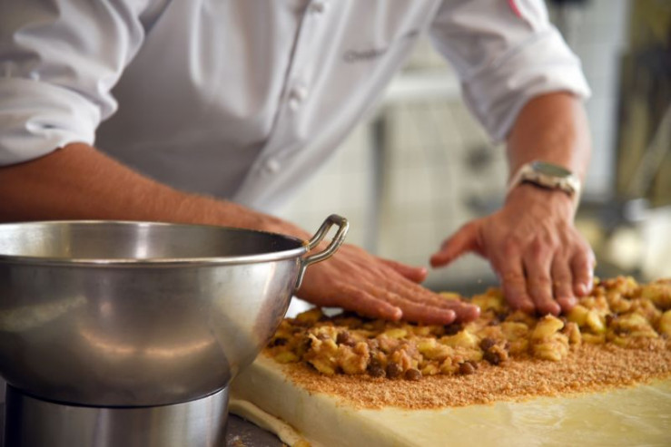 Der "Vierlings-Strudel" ist quasi das slowenische Nationalgebäck: Zwischen den Strudelblättern werden schichtweise verschiedene Füllungen - aus Mohn, Nüssen, Äpfeln und Topfen - aufgetragen und noch mit "süßer Sahne" getränkt.