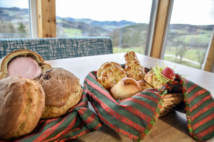 Auch im katholischen Pielachtal werden auf diese Weise verschiedene Striezel und Osterbrote gebacken. Jedes Haus hat sein eigenes Rezept. Manchmal wird ein selbst geselchter Osterschinken eingebacken und in die Weihe-Körbe gelegt. Am Karfreitag gibt es am besten nur eine Gemüse- oder Stosuppe, eine einfache Suppe aus gestockter Milch. Geschlemmt wird erst am Ostersamstag mit einer deftigen Jause, bei der frischer Schafskäse nicht fehlen darf. Von der ersten Frühlingskräuter-Milch schmeckt er am besten. Am Ostersonntag werden dann die Ostereier gesucht, anschließend wird ein Osterbraten serviert.