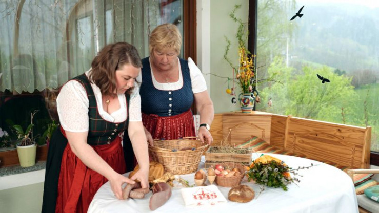Den Höhepunkt bildet die festliche Osterjause, eine Nachmittagsmahlzeit mit geweihtem Schinken, Eiern, Würsten und süßem Napfkuchen, dem Reindling. Die liebevoll bestickten Weihkorbdecke über diesen Gaben wird oft über Generationen weitergegeben. Dazu gibt es regionale Spezialitäten wie die mit Mohn gefüllte Butter aus dem Gegendtal. Schließlich darf auch das fröhliche Eierrollen am Ostersonntag nicht fehlen - ein Spiel, das Familien und Generationen verbindet.