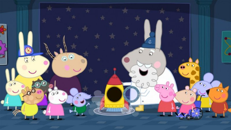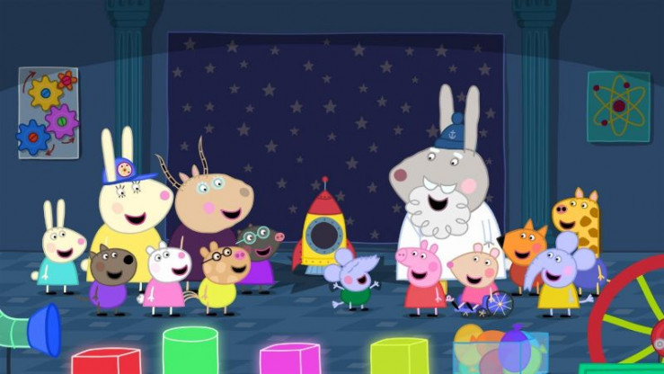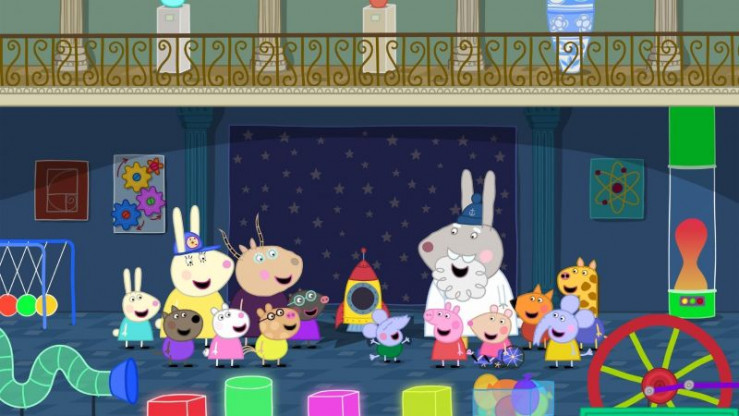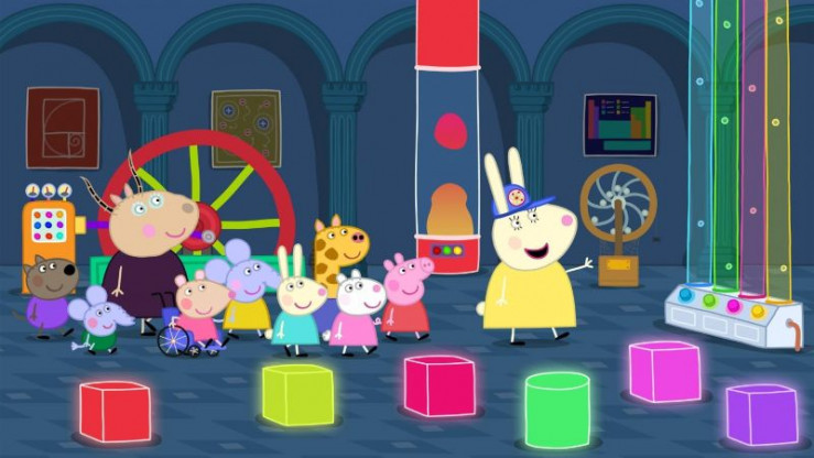 Peppa (re.) und ihre Freunde machen einen Ausflug zu einem Wissenschaftsmuseum. Dort gibt es so Einiges zu entdecken und zu testen. +++ Die Verwendung des sendungsbezogenen Materials ist nur mit dem Hinweis und Verlinkung auf RTL+ gestattet. +++