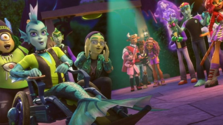 Deuce, Tor Alei, Heath, Draculaura, Clawdeen, Frankie Lagoona und Cleo (v.li.n.re.) sind Schüler:innen auf der Monster High. +++ Die Verwendung des sendungsbezogenen Materials ist nur mit dem Hinweis und Verlinkung auf RTL+ gestattet. +++