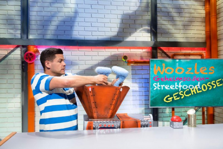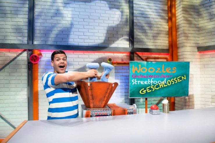 Willkommen im Woozle Goozle Kochstudio! Simón (re.) ist von Woozles Geheimsoße 3001 begeistert. Aber mit ihrem neuen Imbiss haben Woozle (li.) und Simón sich vielleicht ein bisschen übernommen.
