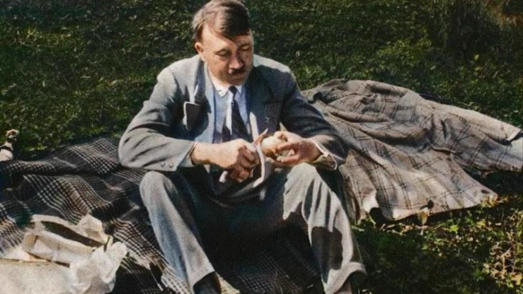 Der deutsche Naziführer Adolf Hitler (1889 - 1945) genießt ein ruhiges Picknick zwischen Sitzungen, um 1933 +++ Die Verwendung des sendungsbezogenen Materials ist nur mit dem Hinweis und Verlinkung auf RTL+ gestattet. +++