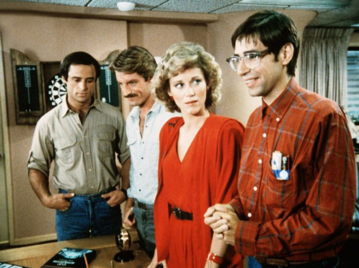Die Fernsehredakteurin Jessie (Joan Sweeny) hat Nick (Joe Penny, li.), Cody (Perry King) und Murray (Thom Bray, re.) engagiert, um den prominenten Gast einer Talkshow zu beschützen. +++ Die Verwendung des sendungsbezogenen Materials ist nur mit dem Hinweis und Verlinkung auf RTL+ gestattet. +++