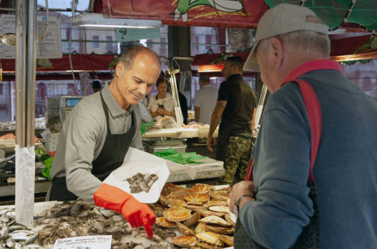 Der Rialtomarkt ist seit jeher der Stolz der echten Venezianer und der Ort, an dem sie ihre frischen Lebensmittel kaufen. Viele der Köstlichkeiten, die Teil der kulinarischen Tradition von Venedig sind, werden mit dem Boot direkt von den nahe gelegenen Inseln Sant'Erasmo und Le Vignole geliefert: Artischocken, Riesentomaten, Jujube-Früchte. Der "späte" Radicchio stammt aus dem Marschland nördlich von Venedig, während Tintenfische, Muscheln und Meeresfrüchte von der anderen Seite der Lagune kommen - von Fischerdörfern wie San Leonardo, der Insel Burano oder sogar von den dem Meer zugewandten Felsen der Giudecca-Inseln.