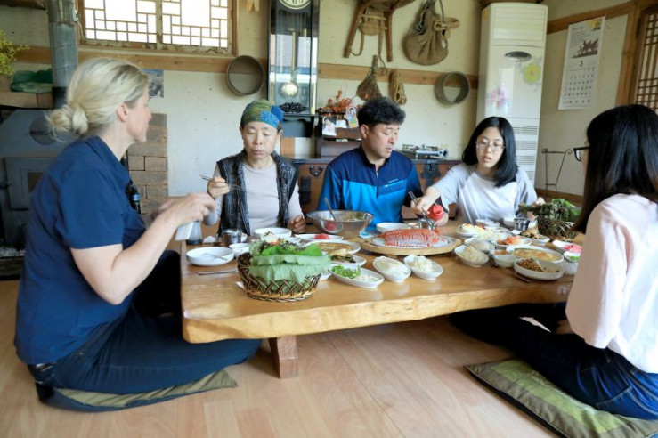 Angekommen in Südkorea: Susannes (li.) erste traditionelle Mahlzeit bei Jong-hwas Familie