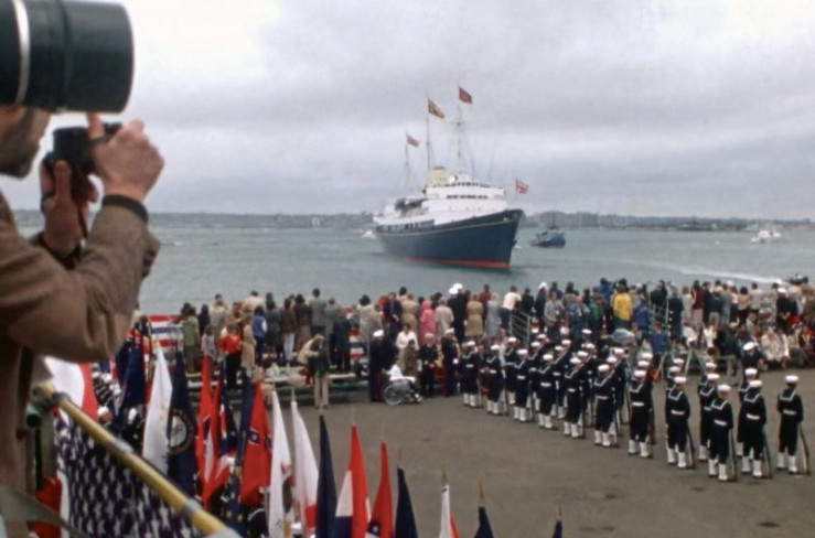 Die "Britannia" läuft am 26. Februar 1983 im Hafen von San Diego (USA) ein.