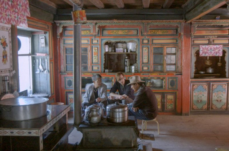 Der niederländische Fotograf Ruben Terlou (Mi.) begibt sich im letzten Teil seiner Reise zu den Ursprüngen des Yangtse. Hier erfährt er von tibetischen Bestattungsritualen (links: Bestatter, rechts: Fahrer und Übersetzer).