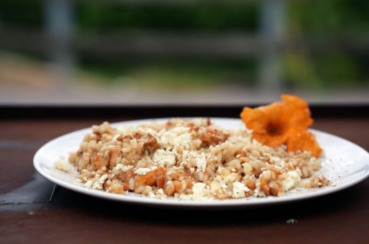 Risotto mit Pfifferlingen und Ahrntaler Graukäse, der Käse-Spezialität aus Südtirol